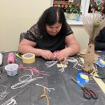 Podczas spotkania 15 listopada, uczestniczki poznały szeroki wachlarz technik rękodzielniczych. Uczyły się, jak z worka i sznurka jutowego stworzyć efektowne kwiaty oraz jesienne dekoracje. Kolejnym etapem było robienie aniołów z nici makramowych, co okazało się wyjątkowo relaksujące i dawało dużo satysfakcji. Panie miały również możliwość wykonania biżuterii z żywicy epoksydowej, projektując swoje prace zgodnie z indywidualnym stylem i wyobraźnią.