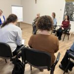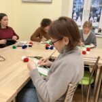 6 grudnia, na warsztatach uczestniczki zapoznały się z techniką haftu igłowego, poznając podstawowe ściegi i możliwości tworzenia haftowanych wzorów. Zwieńczeniem cyklu było własnoręczne wykonywanie dekoracyjnych świec, które zdobiły suszonymi roślinami, koronkami i drobnymi elementami świątecznymi. Każda z pań mogła zabrać ze sobą unikalną, samodzielnie przygotowaną ozdobę.